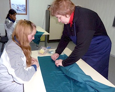 „Tante Lena, kannst du mir noch einmal zeigen, wie man die beiden Teile zusammennäht!“ Aufgeregt laufen die Mädchen durch unsere „Lehrwerkstatt“. Heute haben sie ihren ersten großen Auftrag, sie müssen Kostüme für unsere Weihnachtsfeiern schneidern.
