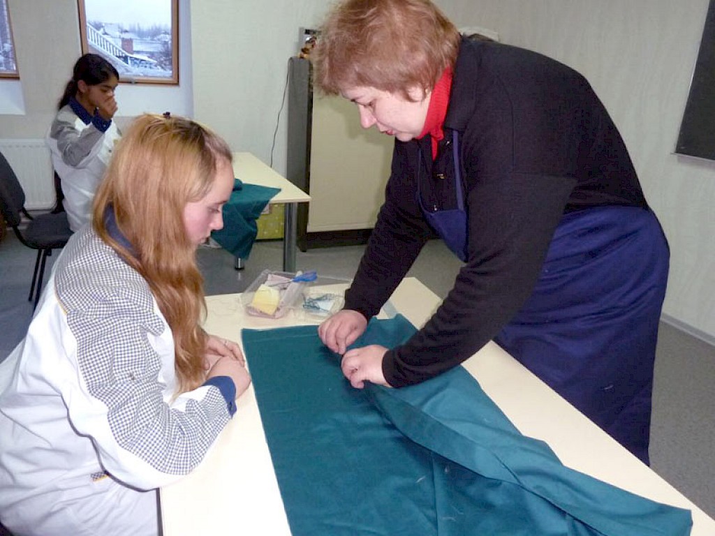 „Tante Lena, kannst du mir noch einmal zeigen, wie man die beiden Teile zusammennäht!“ Aufgeregt laufen die Mädchen durch unsere „Lehrwerkstatt“. Heute haben sie ihren ersten großen Auftrag, sie müssen Kostüme für unsere Weihnachtsfeiern schneidern.