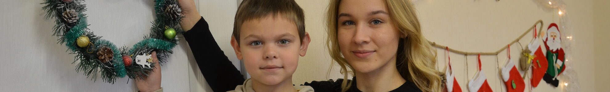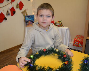 Die Kinder suchten sich die schönsten Zweige aus und wickelten sie sorgfältig um das Gerüst aus Draht. Jeder schmückte seinen Kranz mit unterschiedlichen bunten Kugeln, Dekorationen und Schleifen. „Tante Nadja, schau mal, mein Kranz sieht wunderschön aus! Er glitzert sogar.“