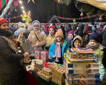 Anschließend können die Mädchen und Jungen auf dem Weihnachtsmarkt „einkaufen“, sich Geschenke aussuchen. Wir spüren, Gottes Frieden und Schutz sind über uns.