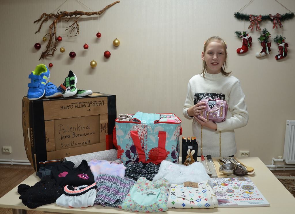 „Tante Lena, schau mal, da ist mein Foto auf dem Notizbuch! Und das ist ein Adventskalender! Bis Weihnachten darf ich jeden Tag ein Türchen öffnen“, Tanja freute sich riesig und betrachtete staunend alle Geschenke in ihrem Paket. „Und in meinem Paket war so eine schöne Handtasche und ein tolles Malbuch!“ Auch Jewa war begeistert.