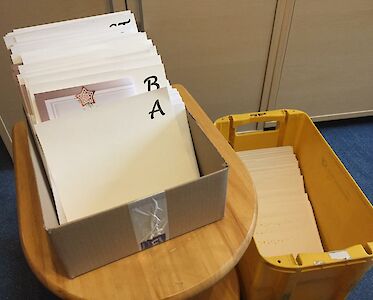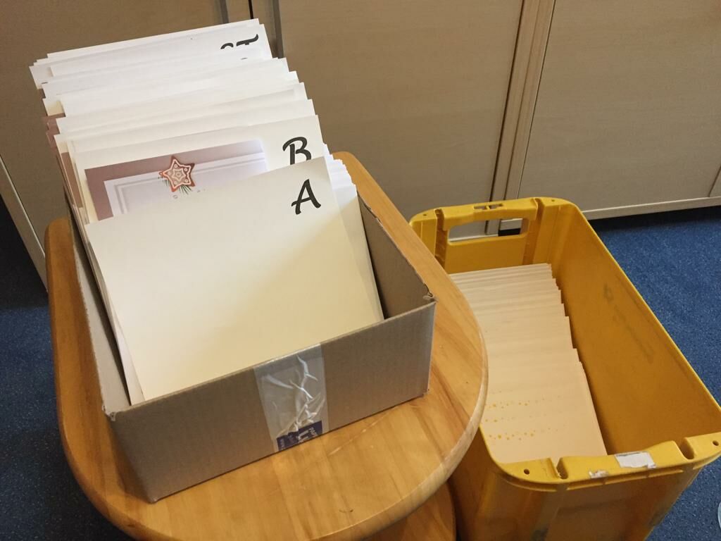 In unserem Büro in Hüttenberg sind Anne Röhrig und Nicola Gocke fleißig dabei, die vielen Weihnachtsbriefe zu übersetzen und in Form zu bringen, die aus der Ukraine bei uns eintreffen. Jedes Kind, jeder Mitarbeiter, jede Patenfamilie möchte „seinen“ Paten in diesen Tagen frohe Weihnachten wünschen und sie an ihren Erlebnissen und Gedanken Anteil nehmen lassen.