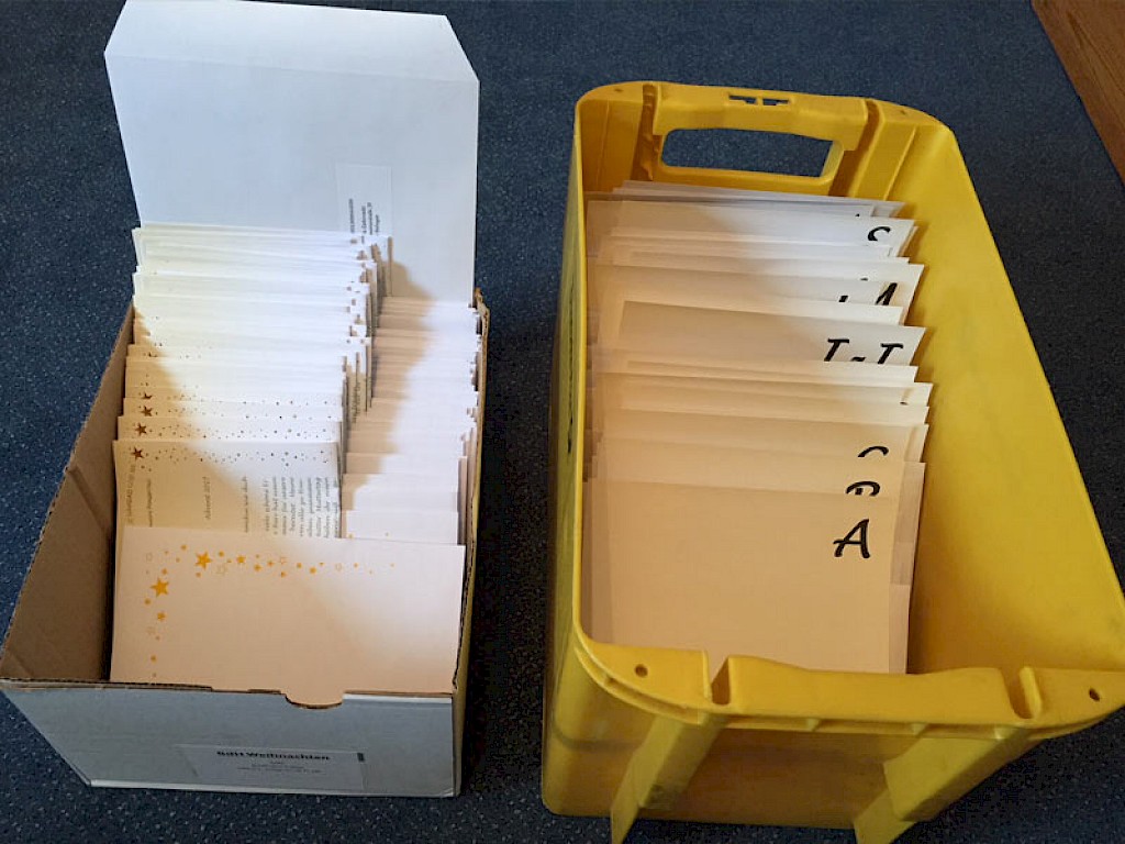 Viele, viele Weihnachtsbriefe sind in den vergangenen Wochen per Mail bei Nicola Gocke eingetroffen und wurden von ihr auf schönes Weihnachtspapier gedruckt. Paten von Kindern, Familien und Mitarbeitern erhalten jedes Jahr einen persönlich geschriebenen Weihnachtsbrief.