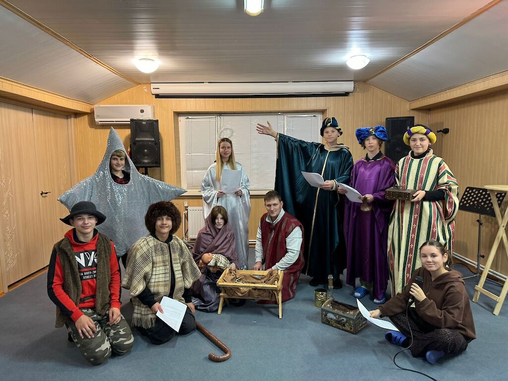 Aufgeregt, aber glücklich, bereiten unsere Jungen Missionare ein wunderbares Weihnachtsprogramm für die Kinder vor. Fast jeden Tag wird geprobt. Jesu Geburt bedeutet große Freude, die der Welt Frieden gebracht hat. In der Ukraine ist Krieg, das Land braucht Gottes Frieden so dringend. Deshalb wollen unsere Jungen Missionare nicht nur Freude, Glück und Geschenke mitbringen, sondern weitersagen, dass Christus geboren ist.