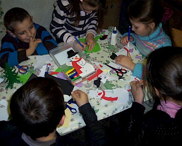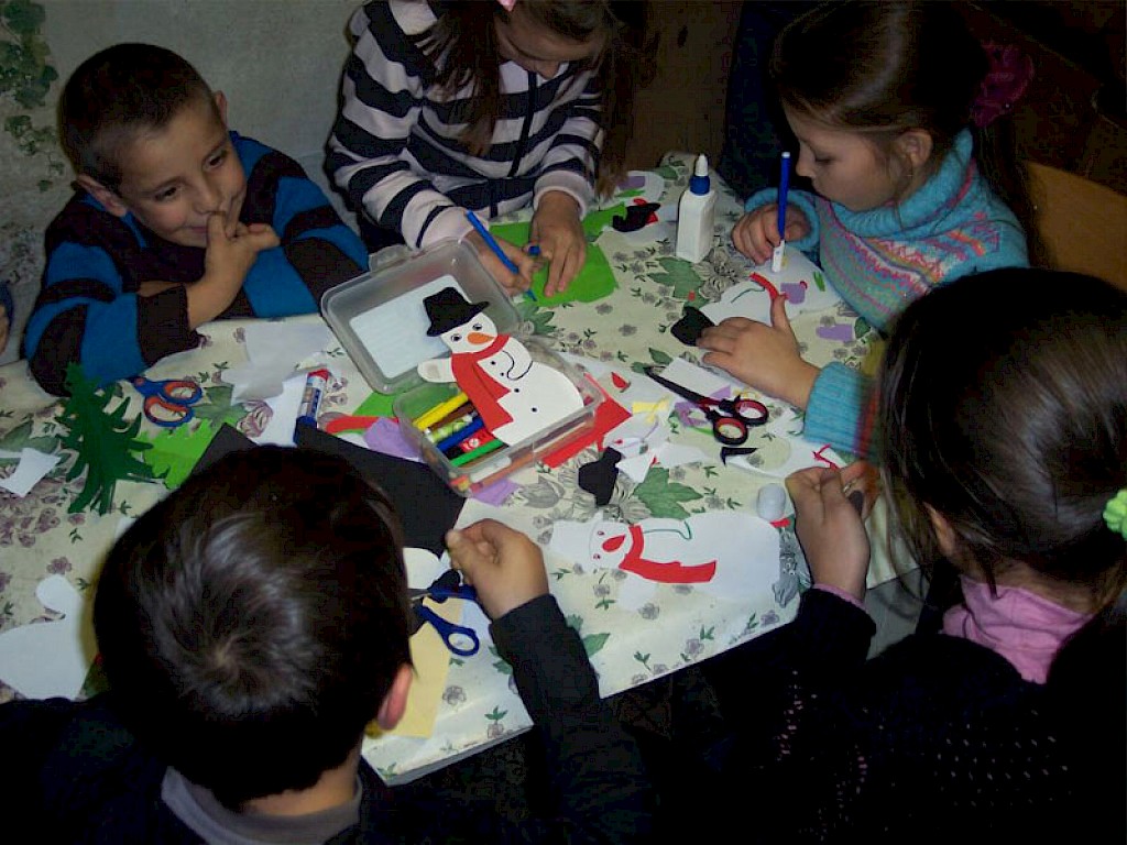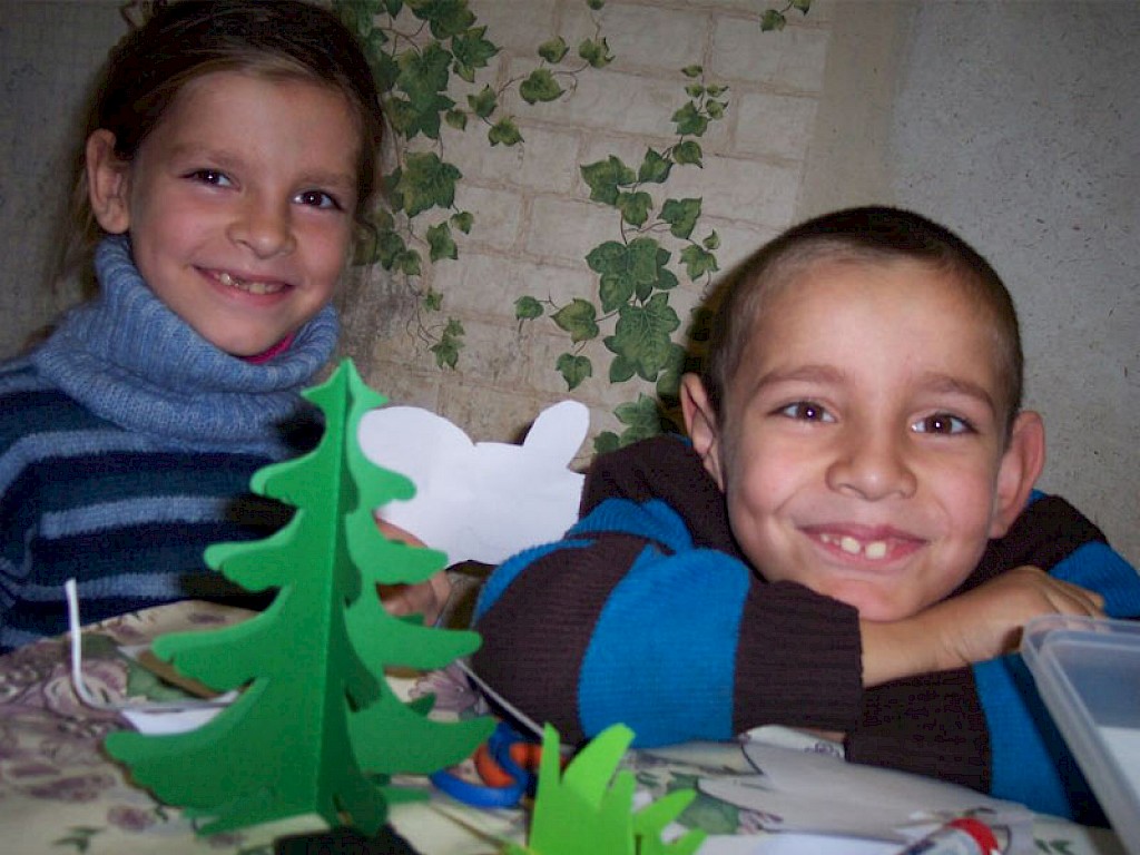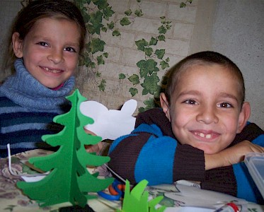 „Tante Natascha, wir sind ganz schnell gelaufen. Heute wollten wir die Ersten sein! Können wir dir helfen?“ Erstaunt schauen sie auf einen Karton mit Weihnachtsdekoration und verstehen nicht, was man damit macht.