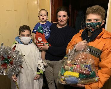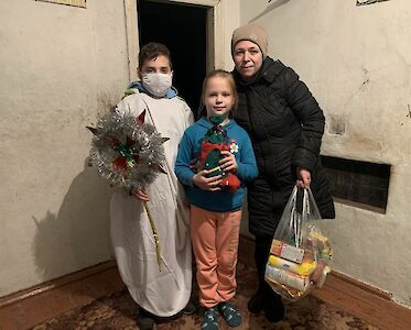"Mama, Mama, schau mal, ein Engel ist zu uns gekommen!" Viele Leute warten ungeduldig auf unseren Besuchen, halten am Fenster nach uns Ausschau. Dann steht vor ihnen ein schöner Engel, in schneeweißer Kleidung, ein leuchtender Stern und natürlich Mitarbeiter mit Geschenken in der Hand. So viele freudige Emotionen, so viel Freude in den glücklichen Augen der Kinder! Auch Erwachsene verstecken ihre Freude nicht, denn für viele Familien sind dies die fröhlichen Besuche in der bevorstehenden Weihnachtszeit. Jeden Tag treffen sich unsere Mitarbeiter in Teams, die zu verschiedenen Zielen in unserer Umgebung fahren. Und überall werden wir mit Freude und Dankbarkeit für unsere Fürsorge und Unterstützung begrüßt. Für viele Familien ist das überreichte Geschenkpaket ein großes Glück und eine gute Unterstützung. Liebevoll ausgesprochene Segenswünsche, führen zu Tränen der Dankbarkeit.
