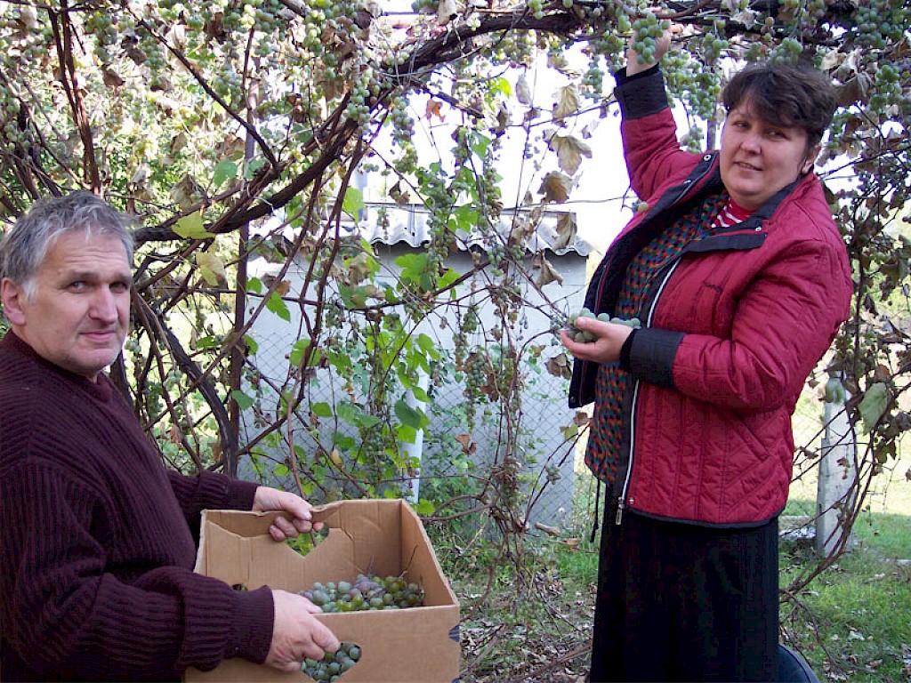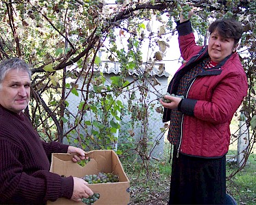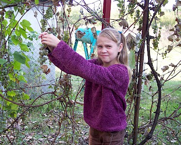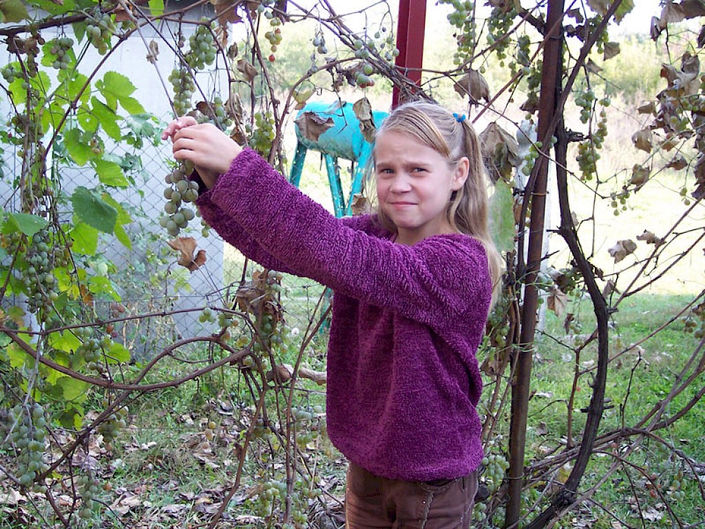 Da ist Wera Kolomoetz in diesen Tagen eifrig damit beschäftigt, aus den Trauben Traubensaft zu pressen, den unsere kleinen Gäste im Winter genießen werden.