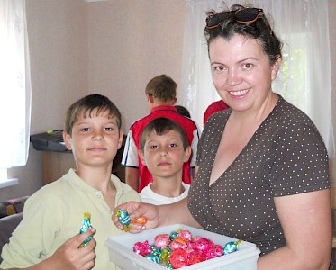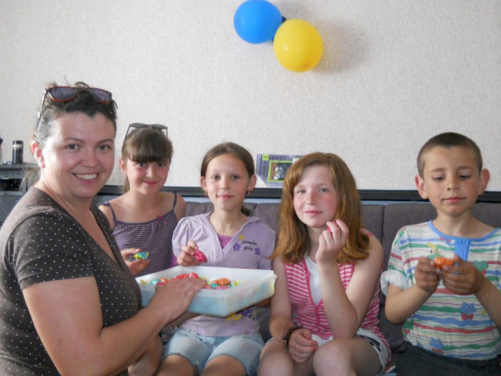 Nicht nur in Deutschland, auch in der Ukraine, wünschen sich Kinder Süßigkeiten. Auf ihrer letzten Reise haben Burkhard und Renate Rudat, die Frau unseres Missionsleiters, viele Süßigkeiten mitgebracht, die unsere Kinder begeistert haben. Das ist auch eine Möglichkeit Wertschätzung zu zeigen.