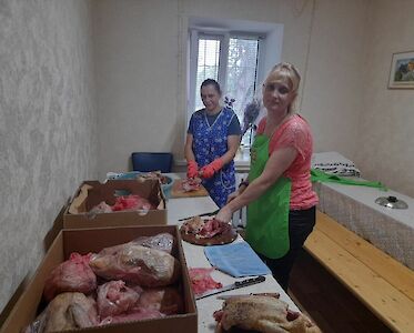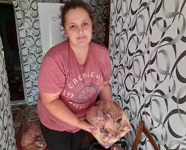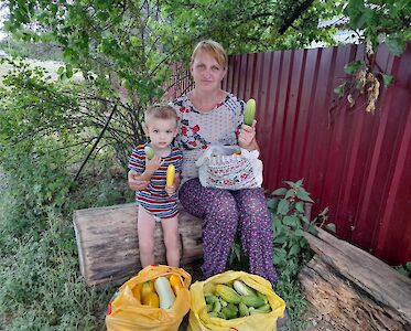 Im Rahmen unserer „Starthilfe“ unterstützen wir jedes Jahr zahlreiche Familie mit Gemüsepflanzen und Saatgut, aber auch mit Hühner- und Entenküken. „Zu Beginn des Krieges hatte ich eine Panikattacke. Ohne eure Hilfe wäre ich geflüchtet. Ihr habt mir Hoffnung gegeben. Ich freue mich immer, wenn ihr mich besuchen kommt.“ Anja ist dankbar und bringt uns geteilte Enten. Sie hat sie zuhause eingefroren und gibt uns für unsere Kinderhäuser davon ab. Andere Menschen schenken uns eingewecktes Gemüse und Obst.
