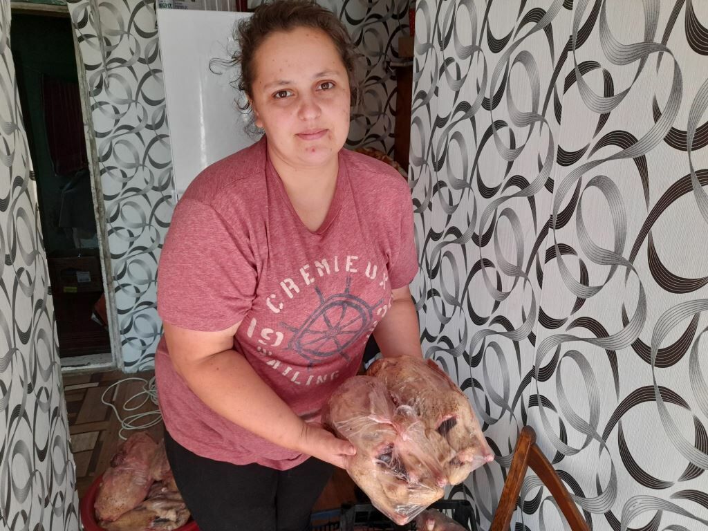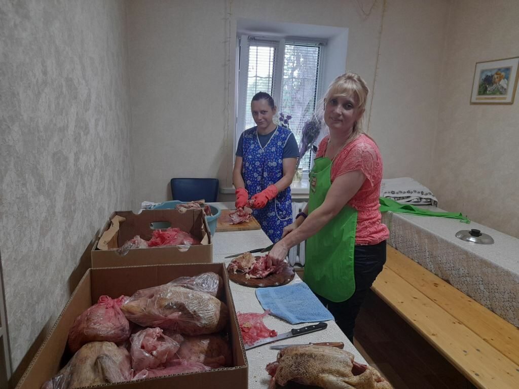 Im Rahmen unserer „Starthilfe“ unterstützen wir jedes Jahr zahlreiche Familie mit Gemüsepflanzen und Saatgut, aber auch mit Hühner- und Entenküken. „Zu Beginn des Krieges hatte ich eine Panikattacke. Ohne eure Hilfe wäre ich geflüchtet. Ihr habt mir Hoffnung gegeben. Ich freue mich immer, wenn ihr mich besuchen kommt.“ Anja ist dankbar und bringt uns geteilte Enten. Sie hat sie zuhause eingefroren und gibt uns für unsere Kinderhäuser davon ab. Andere Menschen schenken uns eingewecktes Gemüse und Obst.