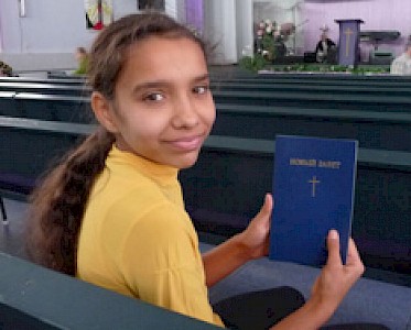 Am Freitag biete ich Nastja Tschernomor und Kristina Romaschenko an, mit mir in den Gottesdienst zu gehen. Kristinas Bruder Marik war das erste Mitglied ihrer Zigeunerfamilie, das im März getauft wurde. Kristina durfte neben seiner Taufe miterleben, wie ihr Bruder Marik vor einem Monat bei Bauarbeiten aus dem dritten Stockwerk fiel und nur eine Gehirnerschütterung und Prellungen hat. Selbst die Ärzte sehen das als ein riesiges Wunder an. Als am Ende des Gottesdienstes der Aufruf kommt, Jesus Christus in seine Leben aufzunehmen, kann Kristina es nicht mehr aushalten. Obwohl sie im Sommerlager bereits zum Glauben gekommen ist, nimmt sie mich bei der Hand und wir beide gehen zum Altar, denn sie will vor all den Menschen bekennen, dass sie Gott von ganzem Herzen folgen will.