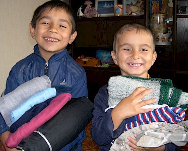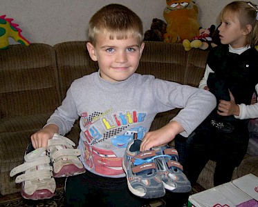 Jeden Tag rufen besorgte Mütter in unseren Büros in der Ukraine an und auch die Jungen und Mädchen aus unseren Kinderhäusern fragen nach warmen Hosen, Jacken und Schuhen. Unsere Mitarbeiter arbeiten harten daran die 1.900 Bananenkartons, die mit dem letzten Hilfsgütertransport aus Deutschland gekommen sind, zu sortieren.