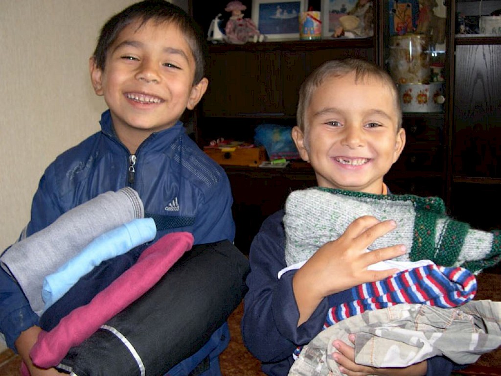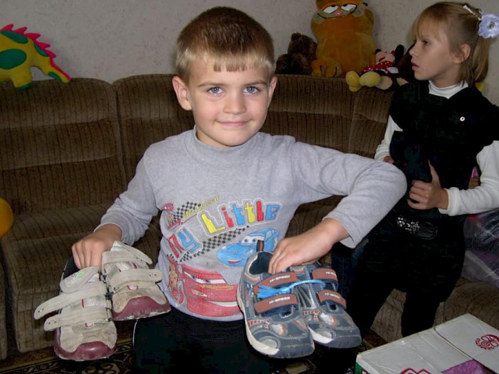 Jeden Tag rufen besorgte Mütter in unseren Büros in der Ukraine an und auch die Jungen und Mädchen aus unseren Kinderhäusern fragen nach warmen Hosen, Jacken und Schuhen. Unsere Mitarbeiter arbeiten harten daran die 1.900 Bananenkartons, die mit dem letzten Hilfsgütertransport aus Deutschland gekommen sind, zu sortieren.