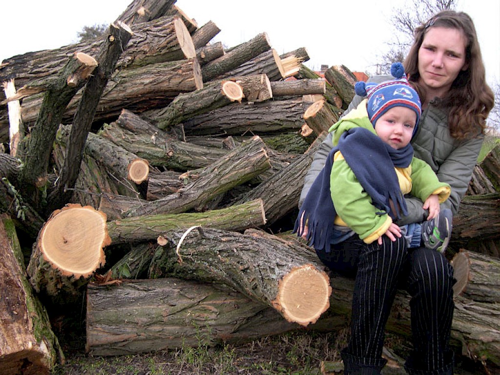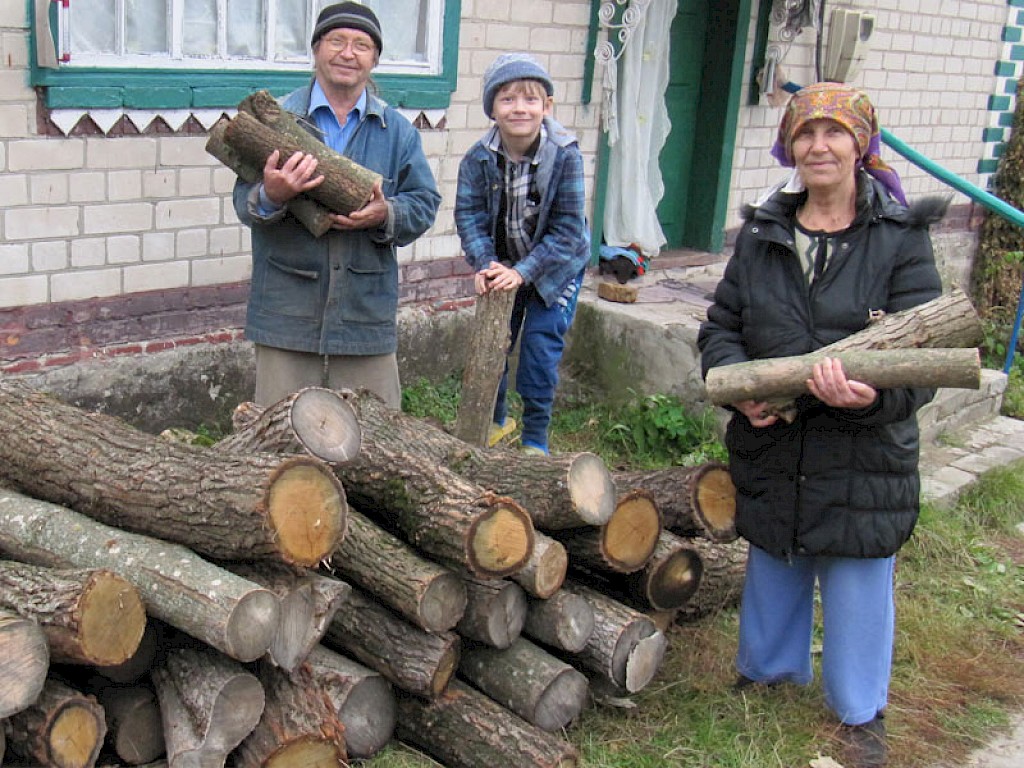 „Luda, wir brauchen dringend Hilfe. Wir haben einen großen Teil von unserem Brennholz einer Nachbarfamilie geschenkt. Ihnen geht es richtig schlecht. Der Vater der Familie ist an Krebs erkrankt. Sie wissen überhaupt nicht, wie es mit ihnen weitergehen soll.“