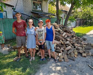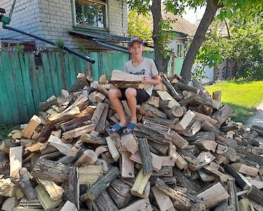Im Herbst läuft unsere Winterholz-Aktion jedes Jahr auf Hochtouren. Einkommensschwache Familien unterstützen wir mit Brennholz, wenn sie uns darum bitten. Dazu gehören viele Flüchtlingsfamilien, kinderreiche Familien, Familien, deren Ehemänner zum Militär eingezogen wurden und einsame, ältere Menschen. Bereits im Juli und August konnten wir viele Menschen mit Winterholz versorgen.