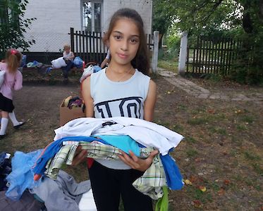 Langsam werden auch in der Ukraine die Nächte kälter und die braunen Blätter künden den Herbst an. Jeden Tag stehen Kinder vor unserem „Zufluchtsort“ in Odarjewka und bitten uns um Winterkleidung. In den „Vergessenen Dörfern“ gibt es keine Arbeit, kein Geld, keine Hoffnung.