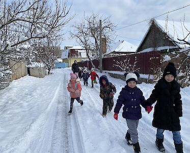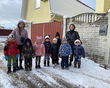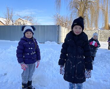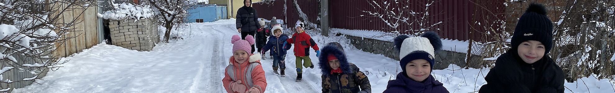 Was gibt es schöneres als Schnee für unsere Kleinsten aus dem „Spatzennest“. Sobald es draußen schneit, können sie es nicht abwarten mit Schneebällen zu spielen, Schlitten zu fahren und Schneemänner zu bauen. Trotz dem schrecklichen Krieg tun wir alles, damit sich unsere Kinder sicher fühlen und Spaß haben. Die Freude war riesig, als wir uns an einem kalten Vormittag alle warm anzogen, um im Schnee zu spielen. Anschließend, auf einer Winterwanderung, konnten sich alle so richtig austoben. „Schau mal, da sitzt ein kleines Vögelchen auf dem Baum. Tante Lisa, meinst du, es friert?“, ruft Dascha besorgt.