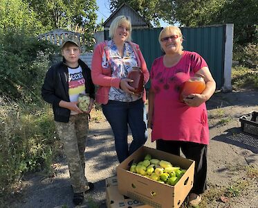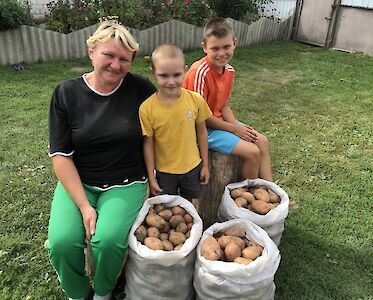 In diesen Tagen kommen jeden Tag Familien, denen wir im Frühjahr mit Saatmaterial geholfen, die wir in unsere Starthilfe aufgenommen haben. Sie bringen uns einen Teil ihrer Ernte.
