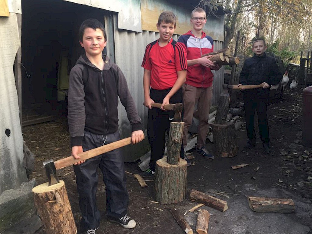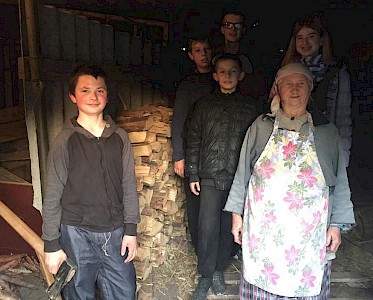 „Ich habe den ganze Sommer gespart und habe Gemüse aus meinem Garten an der Hauptstraße verkauft, um für den Winter Brennholz kaufen zu können. Nun habt ihr mir geholfen und eure „Jungen Missionare“ kommen sogar noch, um es zu zersägen und ofenfertig zu hacken.