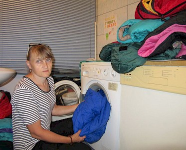 „Lehrlinge“ haben Zelte repariert, Mädchen 110 verschiedenfarbige Halstücher genäht. Olga Schumilo hat Medikamente und Verbandsmaterial besorgt, Köchinnen Kochpläne erstellt, Obst und Gemüse eingekauft, Musiker Lieder geübt. Jeder der 30 Mitarbeiter weiß, was seine Aufgabe ist.
