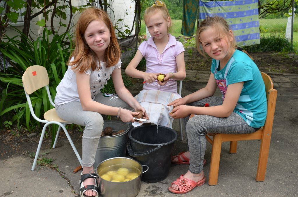 Vor kurzem veranstalteten wir eine Wochenendfreizeit in unserem Freizeitzentrum in Odariwka. Die Mädchen, die daran teilnehmen durften, waren sieben bis neun Jahre alt. Was war das für eine Aufregung! Die Mädels durften ihr eigenes Bett mit duftender Bettwäsche beziehen. Die ganze Gruppe konnte zusammen übernachten und gemeinsam Zeit verbringen. Sie schälten Kartoffeln, kochten unter Anleitung. Auch schwimmen sind wir zusammen gegangen. Es war wertvoll für die Kinder, dass wir ihnen Aufmerksamkeit schenkten und ihnen zuhörten. Wir erzählten biblische Geschichten und beteten gemeinsam.
