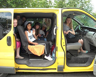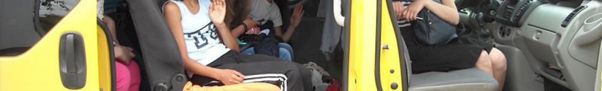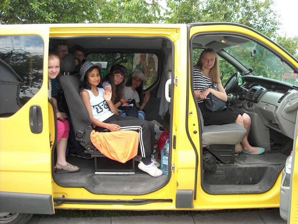 Und dann geht es los. Bereits im großen Bus von Peter Degtjar wird die meiste Zeit gesungen. Zwei Mädels, die für die Küche zuständig sind, lesen immer wieder ihre Speisepläne durch.