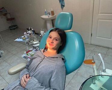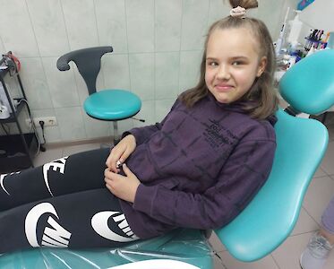 Mit einigen Mädchen, die den Zufluchtsort in Pawliwka besuchen, waren unsere Mitarbeiter beim Zahnarzt. Die Kinder klagen oft über akute Zahnschmerzen, sie haben Karies. Da muss schnell gehandelt und die Zähne behandelt werden. Die Warteliste für einen Zahnarztbesuch ist lang. Die Behandlung ist teuer, viele Familien auf dem Land haben nicht die Mittel, ihre Zähne sanieren zu lassen. In den Dörfern trifft man oft auf junge Menschen, die leider schon Zähne verloren haben. Schlechte Wasserqualität und unzureichende Ernährung, sowie fehlende Präventivmaßnahmen verschlimmern die Situation.