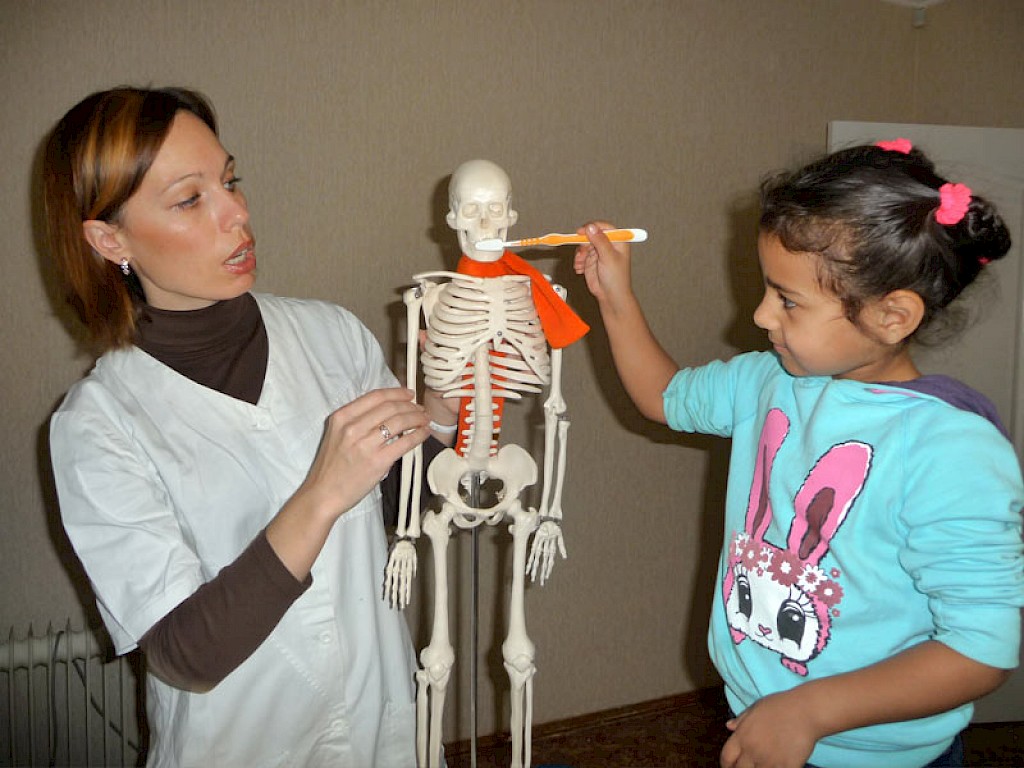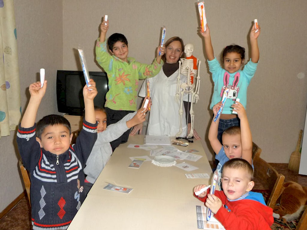 Wir haben regelmäßig Seminare zum Thema Zahnpflege. Im Anschluss, nach einem Abschlusstest, erhält jedes Kind seine erste Zahnbürste und seine erste Zahnpasta.