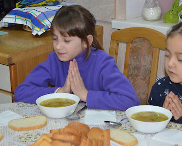 Die Kinder können bei uns Mittagessen, wir helfen bei den Hausaufgaben, sie bekommen Kleidung und Schuhe, können ihre Wäsche waschen und duschen. Wir bringen ihnen aber auch bei, wie man sich bei einem Raketenangriff verhalten sollte und beten zusammen, dass Gott uns bewahrt.
