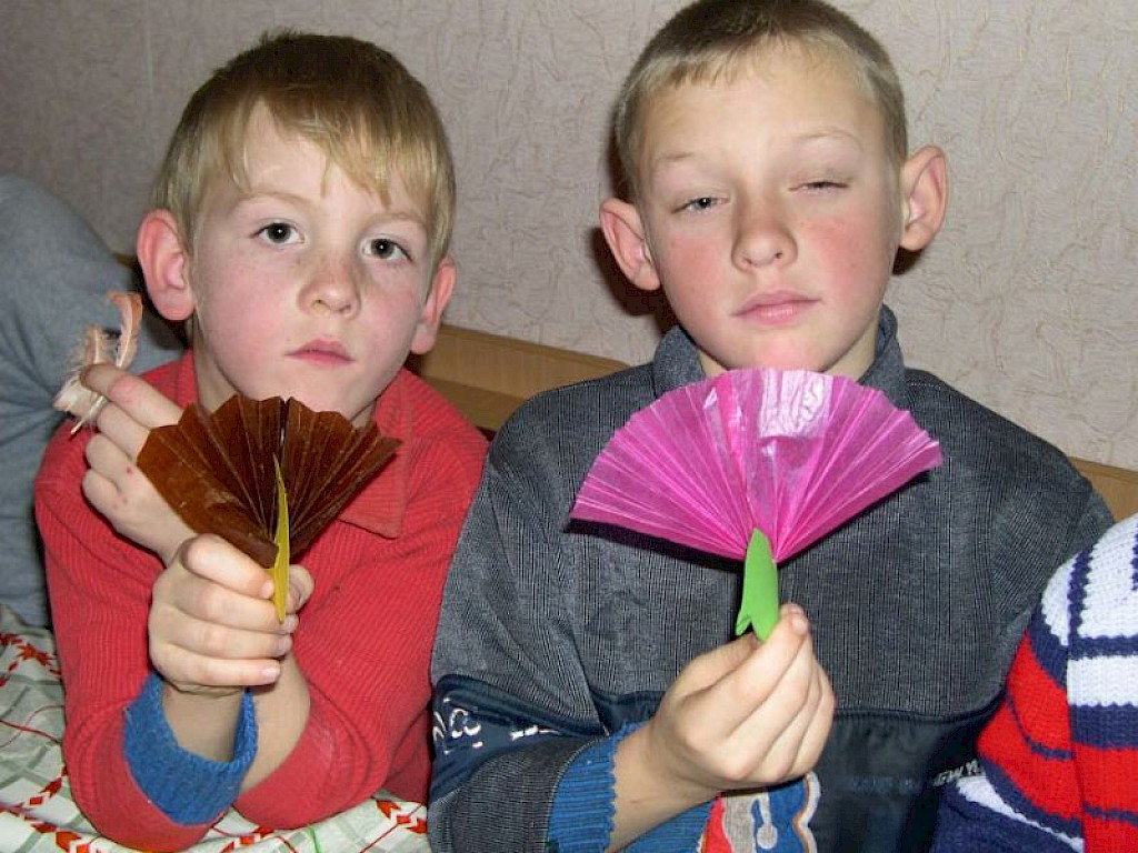 Lange haben wir für dieses Problem gebetet, als uns Inna, die Tochter von Luda Slobodianik, die unsere Arbeit in den „Zufluchtsorten“ und in den „Vergessenen Dörfern“ leitet, ihre Hilfe anbot. Nun geht sie regelmäßig mit ihrer Mutter nach Grigorowka, um mit den Kleinen zu arbeiten, damit sich Luda auf die Großen konzentrieren kann.