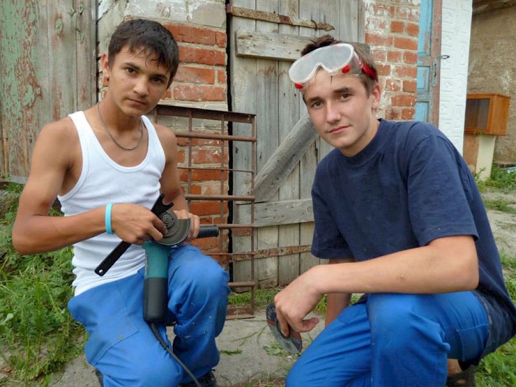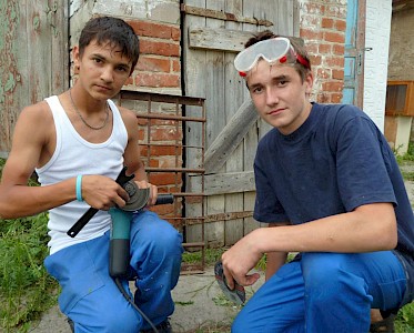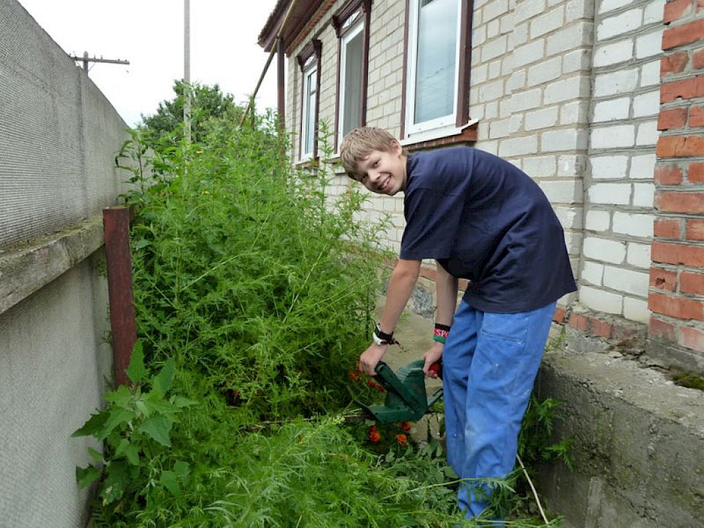 In dieser Woche haben die Jungen von unserer „Lehrwerkstatt“ erst einmal den Garten aufgeräumt, sie haben den Rasen gemäht, die Büsche beschnitten. In zwei Wochen kommt dann eine Baubrigade, die mit den Renovierungsarbeiten beginnt.